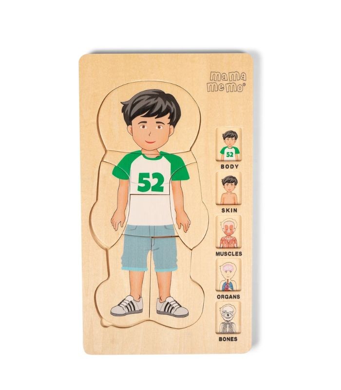 Είναι ένα εξαιρετικό παζλ για μάθηση. Το παιδί μπορεί είτε να παίξει με το παζλ μόνο του είτε με έναν μεγαλύτερο πρόσωπο, το οποίο μπορεί να του πει τα πάντα για τα διάφορα μέρη του σώματος και τις λειτουργίες τους.