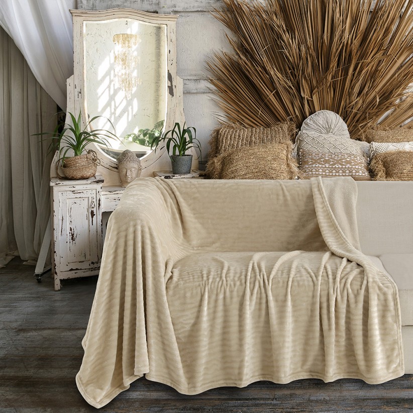 Ριχτάρι Flannel Enzo με ανάγλυφο σχέδιο από τη Melinen. Kατασκευασμένο από 100% πολυεστερικό-flannel ύφασμα, διακοσμεί το σαλόνι σας τους χειμερινούς μήνες και χαρίζει απαλότητα και ζεστασιά. Διατίθεται σε τρεις διαστάσεις, για πολυθρόνα, διθέσιο και τριθέσιο καναπέ.